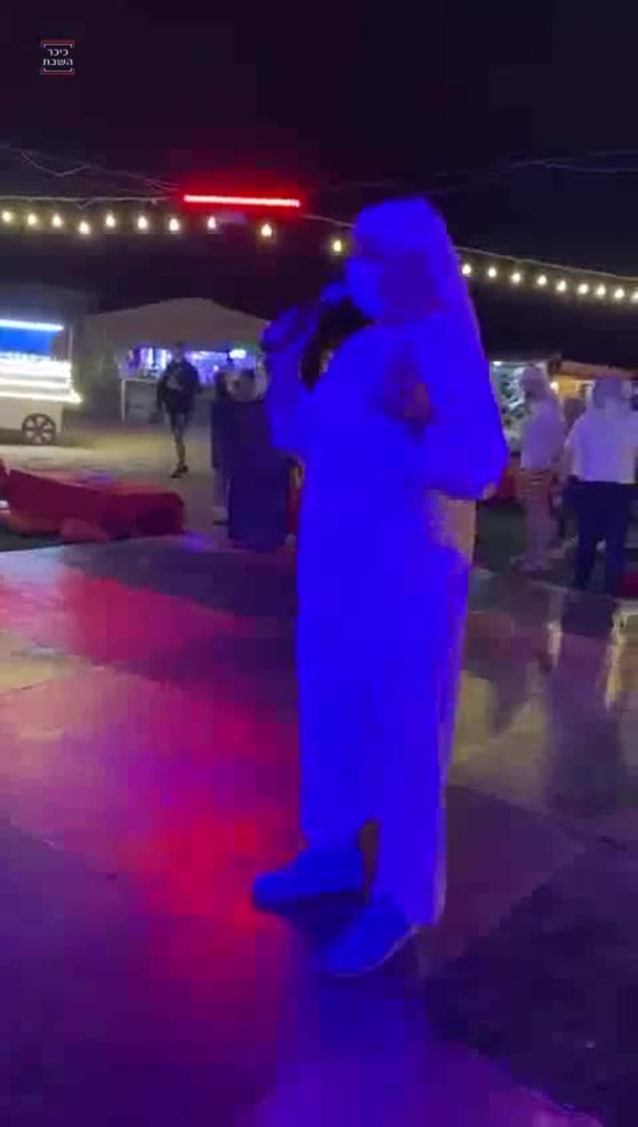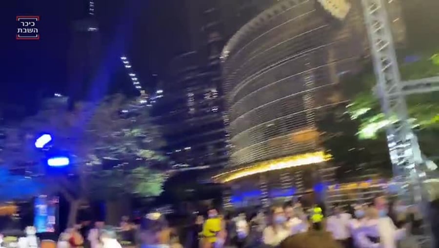 • אנחנו נשארים רגע עם טוקר, לתיעוד נוסף מדובאי - כשהוא בלבוש מקומי מהודר, מחמם את הקהל לפני הדלקת הנרות של המיליונר החרדי אבישי נריה, שהתלבש בבגדי שייח'.