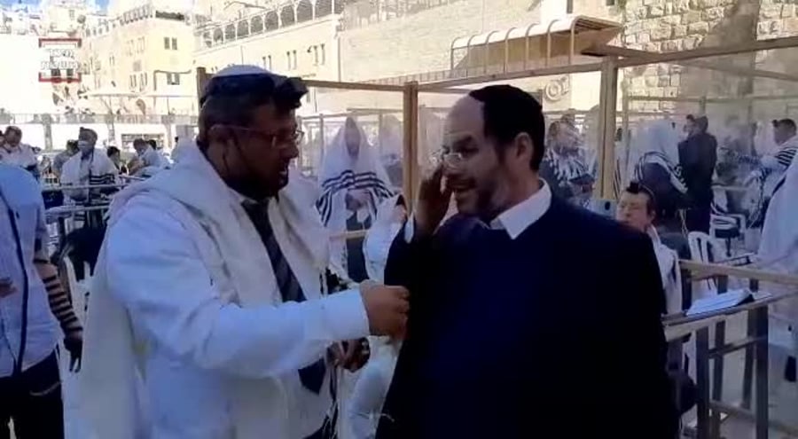 • והנה, חבר-הכנסת החדש איתמר בן גביר בסוד שיח עם הזמר והיוצר אהרן רזאל, סמוך ונראה לכותל המערבי.