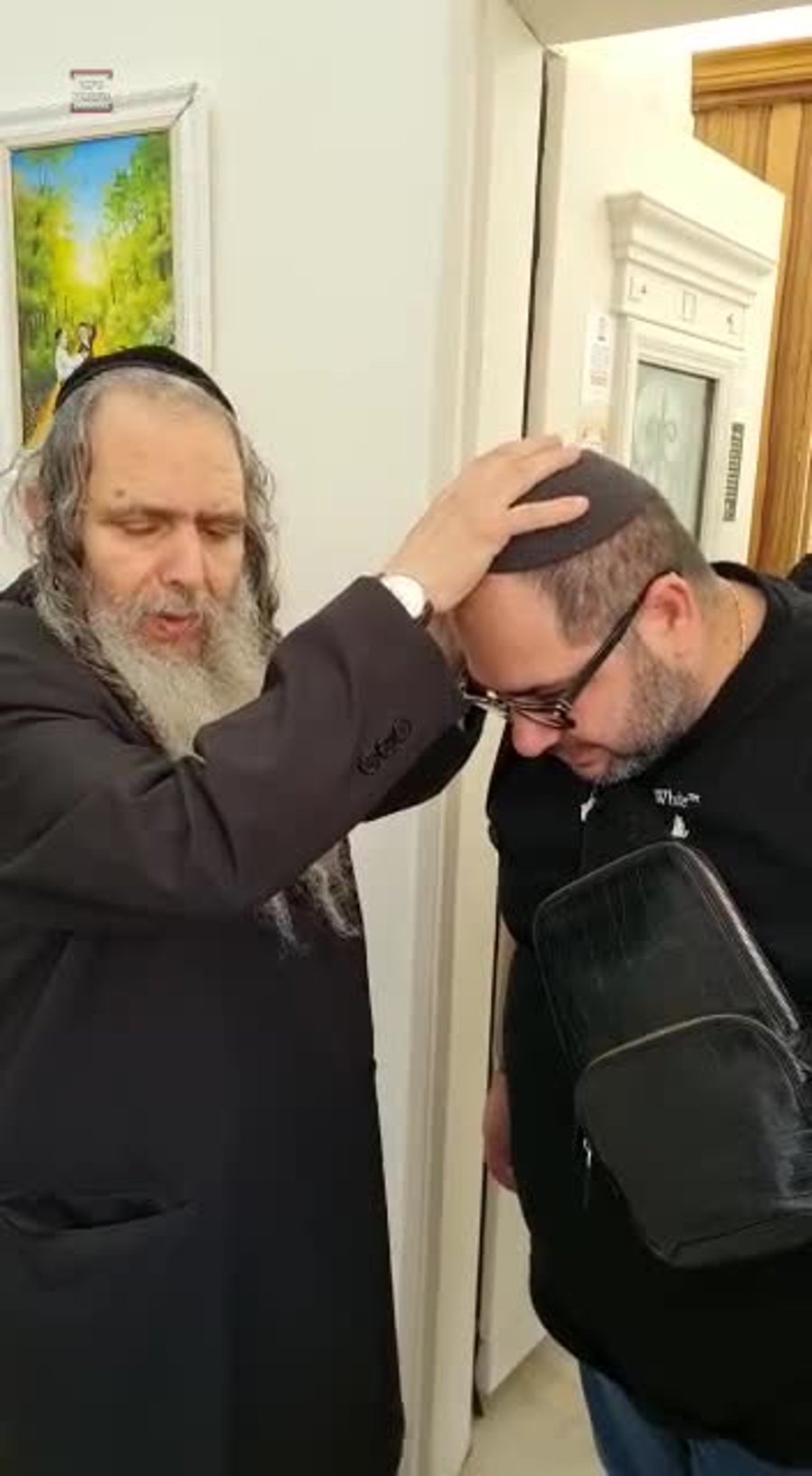 בברית לנכדו של שמעון כצנלסון סגן ראש עיריית אשדוד - ראינו את המקובל הרב יעקב ישראל איפרגן (הרנטגן) מברך את ראש העיר אשדוד יחיאל לסרי.