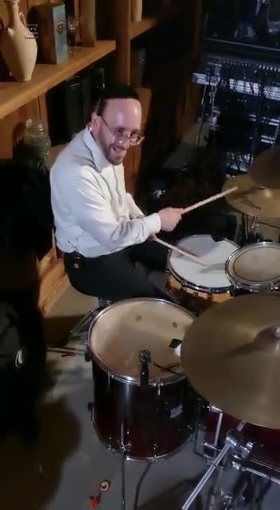 אבי הבת, נגן הקלרינט דוד קליגר, ב"לחיים" לרגל שמחת הולדת בתו - בשיעור המיוחד של וועד "מבקשי השם" בבני ברק בראשות הרב אהרון בירנצווייג מרבני ישיבת מיר.