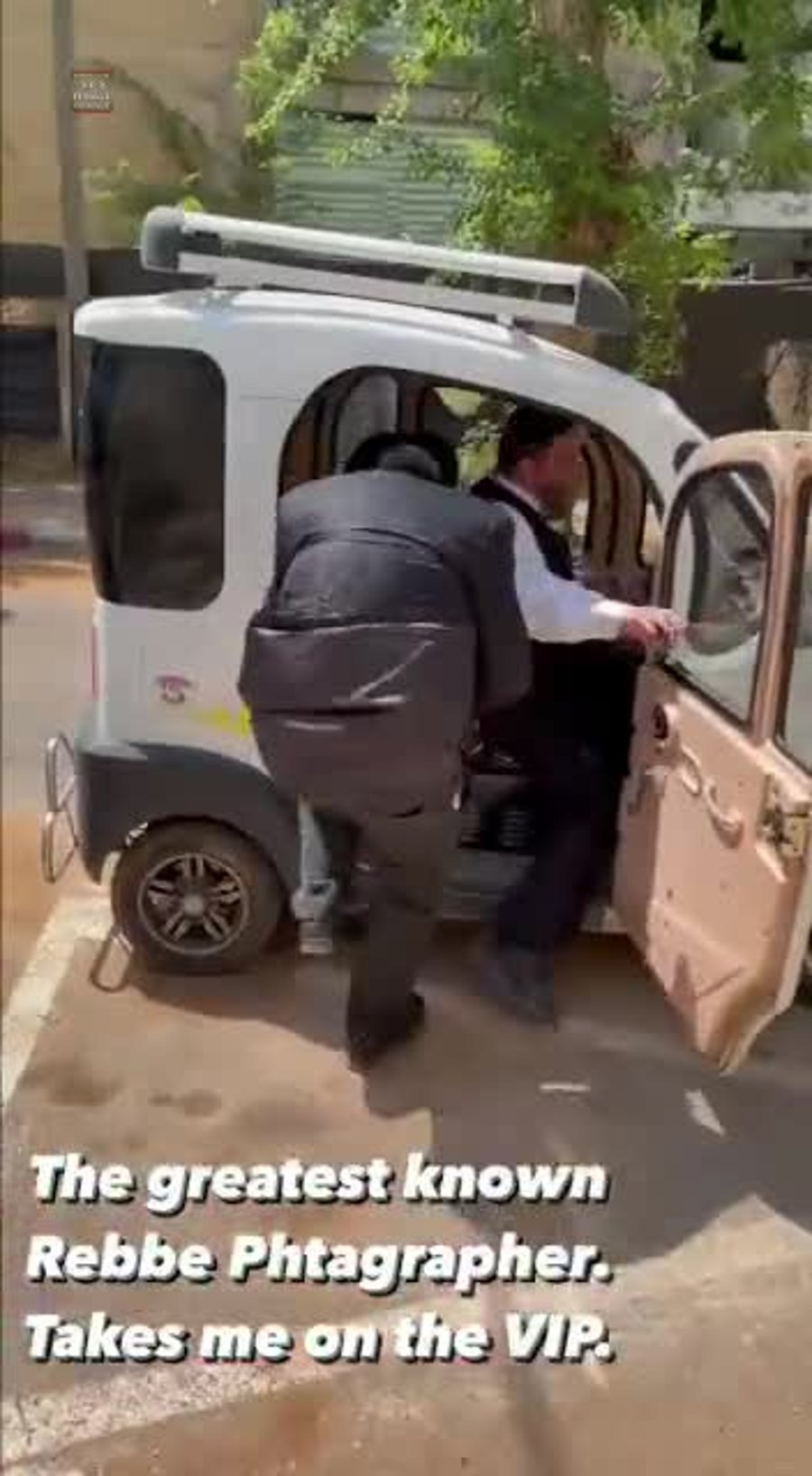 והנה ליפא שמלצר ברגע של שעשוע עם הצלם שוקי לרר והקלנועית ברחובות עיר התורה והחסידות בני ברק.