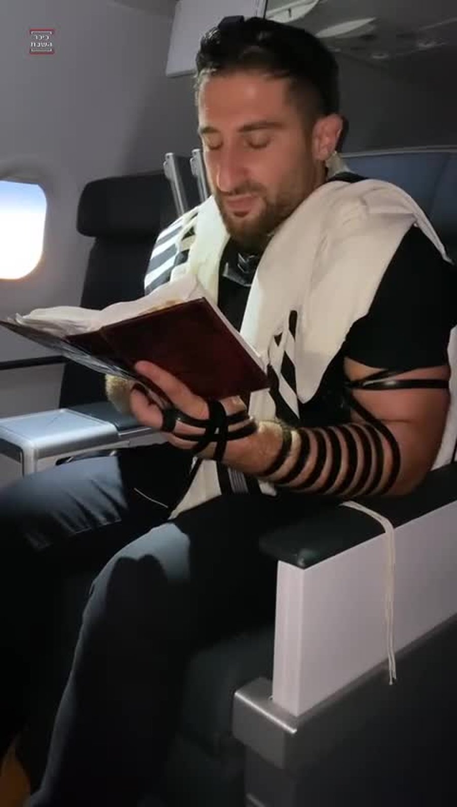 הזמר איציק אורלב נצפה בתפילת שחרית בטיסה לחו"ל בדרך לשמח חתן וכלה כשנץ החמה מבצבץ מבעד לחלון.