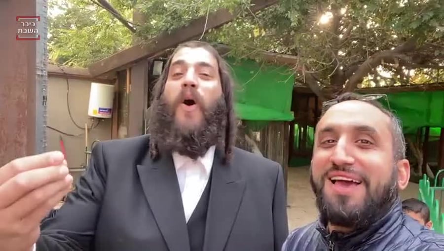 "ונהפוך הוא": הזמרים אריק דביר הליטאי ושרוליק קלצקין החסידי נצפו בהחלפת קולקציה במהלך שמחה.