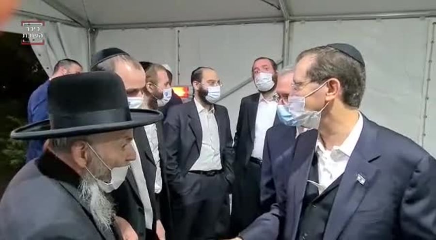הגאון הרב צבי פדידה, ראש מוסדות 'אור גאון' בבני ברק והיועץ הרפואי שימי גשייד נצפו בניחום אבלים אצל נשיא המדינה יצחק הרצוג היושב שבעה על פטירת אימו.