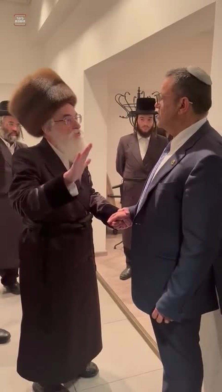 איש 'כיכר השבת' איציק אוחנה נצפה מלווה את מפכ"ל המשטרה קובי שבתאי לאחר ניחום אבלים אצל בני משפחתו של מרן שר התורה הגאון רבי חיים קנייבסקי זצ"ל.