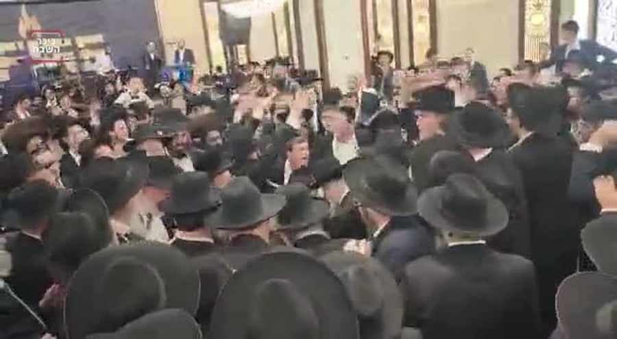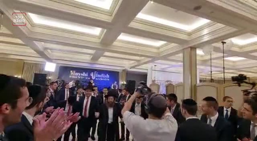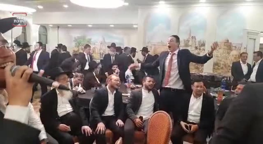 יונה ויזל, עוזרו של חבר הכנסת יעקב אשר מ'דגל התורה', שהתארס עם שני טוקר, בתה של השופטת החרדית חוי טוקר - בניגוני דביקות יחד עם חבריו בשמחת אירוסיו.