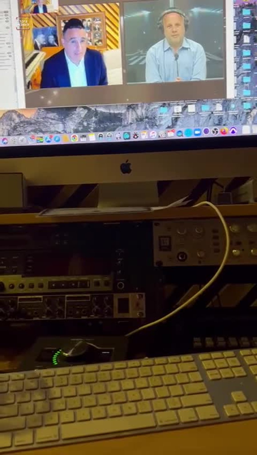 הזמר יעקב שוואקי בתיעוד מהאולפן הביתי בהקלטת הריאיון למנחם טוקר על האלבום החדש 'עליה' שישודר בתכנית 'מוצ"ש חי' השבוע.