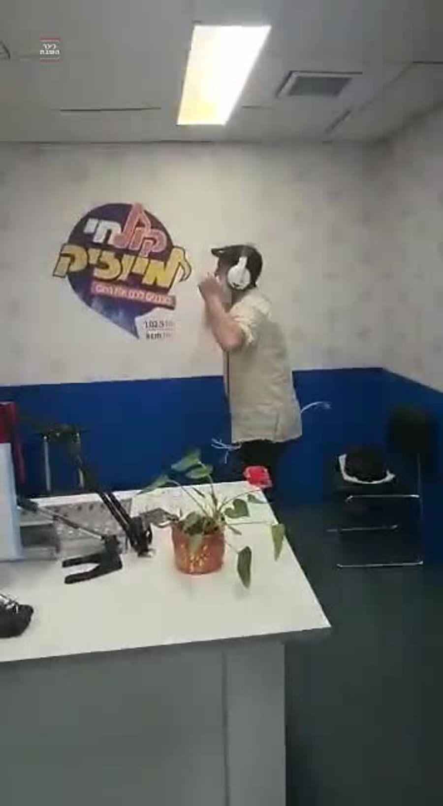 השדרן ירון בר בריקוד סוער באולפני 'קול חי מיוזיק' במהלך שידור תוכניתו.