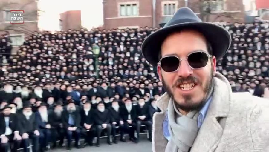 איש התיירות החב"די יוני כהנא בצילום דיווח מיוחד למדור 'זופניק' דקות לפני הצילום המסורתי ב-770 בכינוס שלוחי חב"ד העולמי.