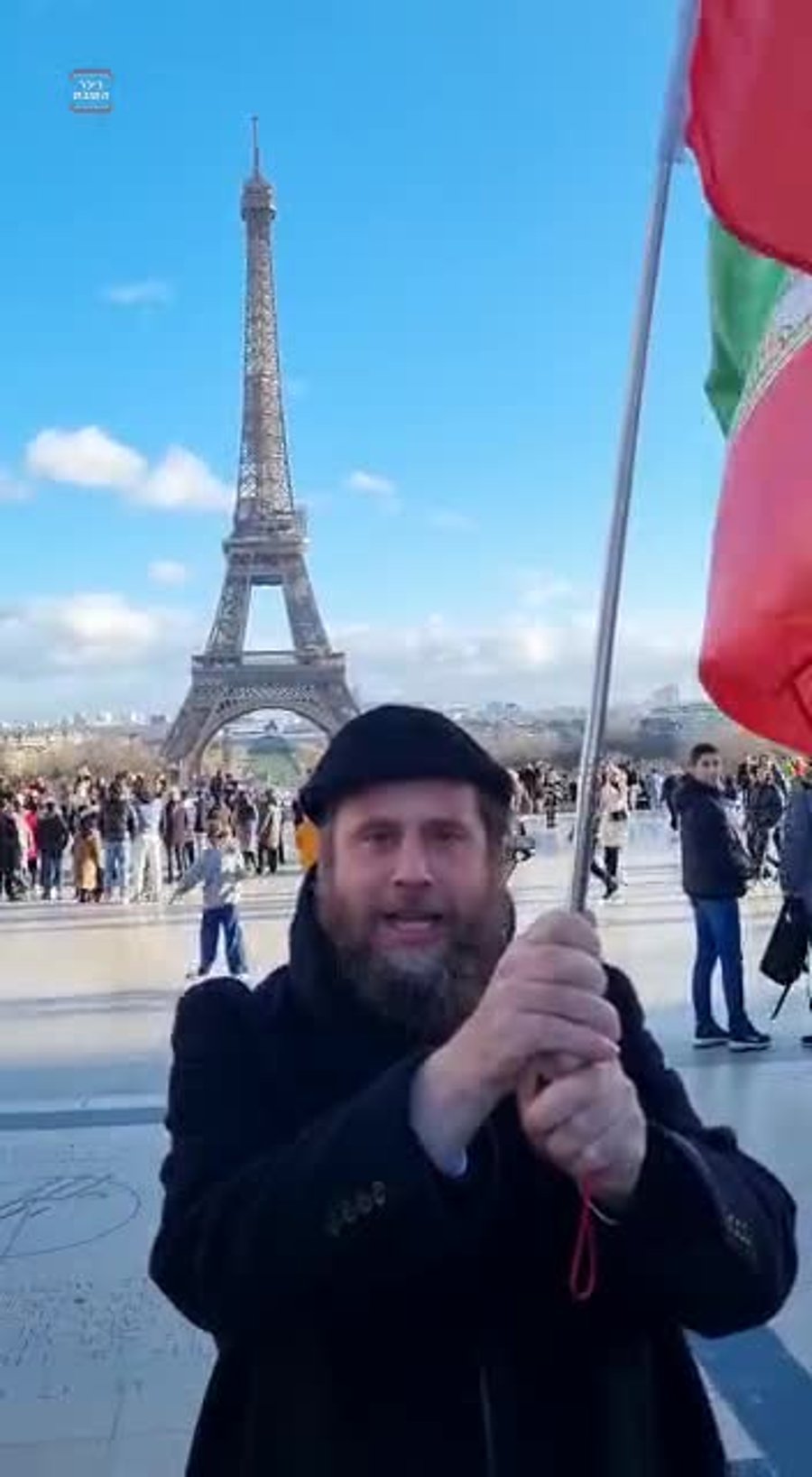 למרגלות מגדל האייפל בפריז, בירת צרפת, ראה 'זופניק' את יועץ התיירות ומנהל 'חו"ל מהודר' דודי רובינשטיין נוטל חלק במחאה האיראנית כולל הנפת הדגל.