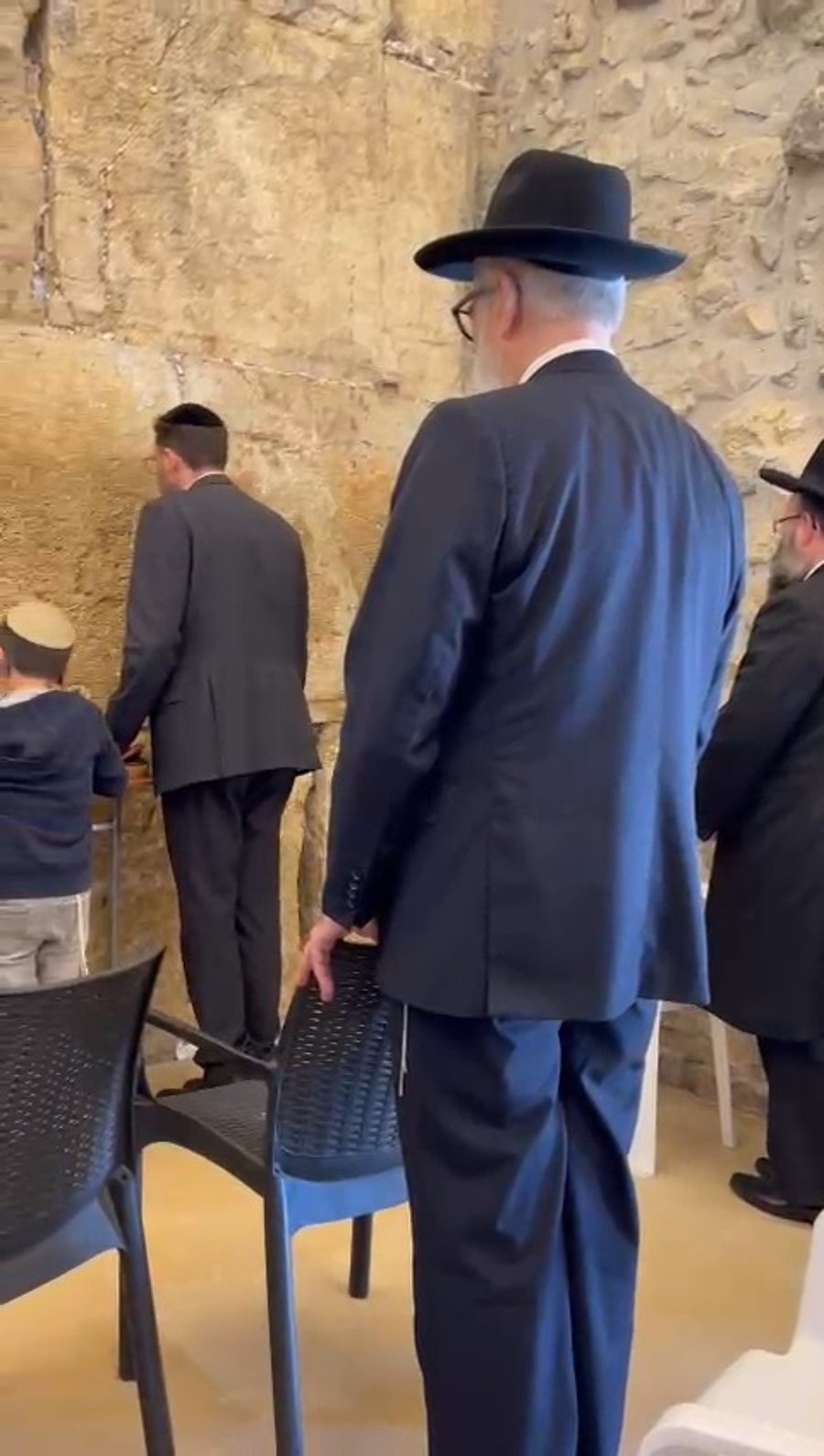 במוצאי חג ראשון של פסח, ראינו את הגאון הרב מרדכי גרוס גאב"ד 'חניכי הישיבות', בתפילה מול הכותל המערבי.