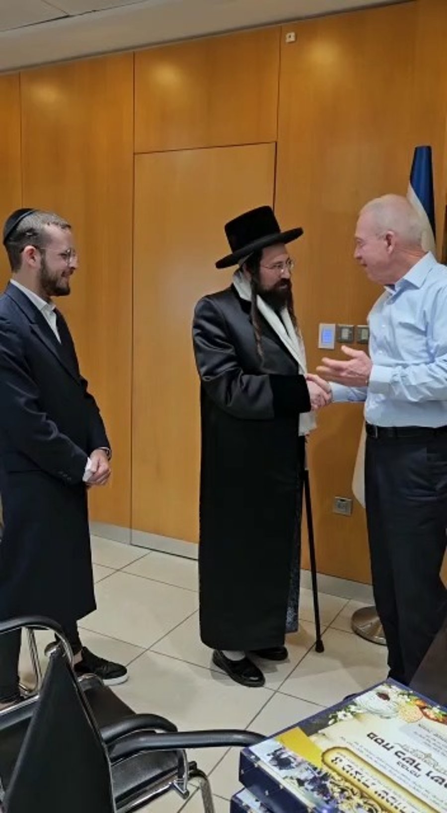 בערב חג הפסח, ראינו את הרב דוד צבי רוזנבוים - האדמו"ר ממז'יבוז' בלשכת שר הביטחון יואב גלנט בקריה בתל אביב, מעניק לו מצות שמורות ויין משובח לליל הסדר. "בתקופה האחרונה יצא לי לראות מעט מאוד אנשים שלא קשורים למערכת הצבאית, אבל היה חשוב לי לארח אותך בלשכה שלי ולקבל מצות ויין לפסח, בין דיון מבצעי לפגישה עם ראש הממשלה", אמר השר.