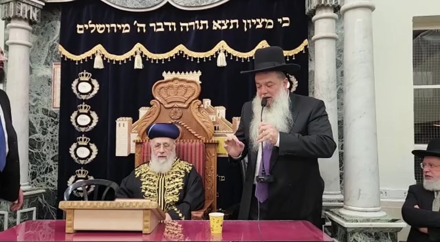 מזכה הרבים הגאון הרב שלום ארוש מבכירי רבני ברסלב בשיעור תורה לאנשי עסקים בבית הכנסת בבית ים שהקים איש העסקים דוד כחלון.