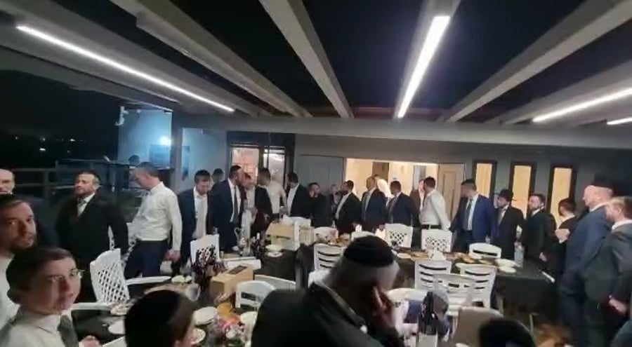 בכירי עיירית אלעד ומשטרת אלעד בחגיגות מימונה פרטית בביתו של רפאל אלבז, מנהל לשכתו של אבי שטרן ממלא מקום ראש העיר ויו"ר 'דגל התורה' בעיר.