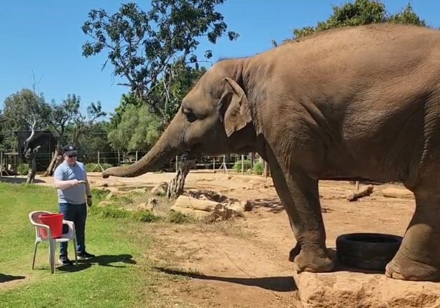 שדרן הרדיו אשר גרייבר נצפה השבוע בסוד שיח מפנק עם אחד הפילים הגדולים בפאפוס • צפו...