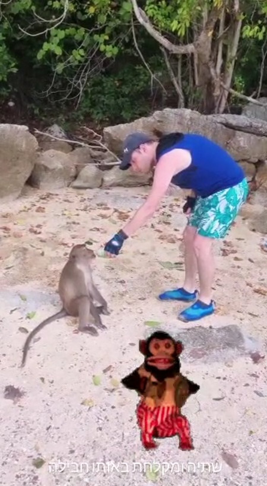 הזמר רולי דיקמן משתעשע עם קוף מקומי במהלך חופשה בתאילנד.