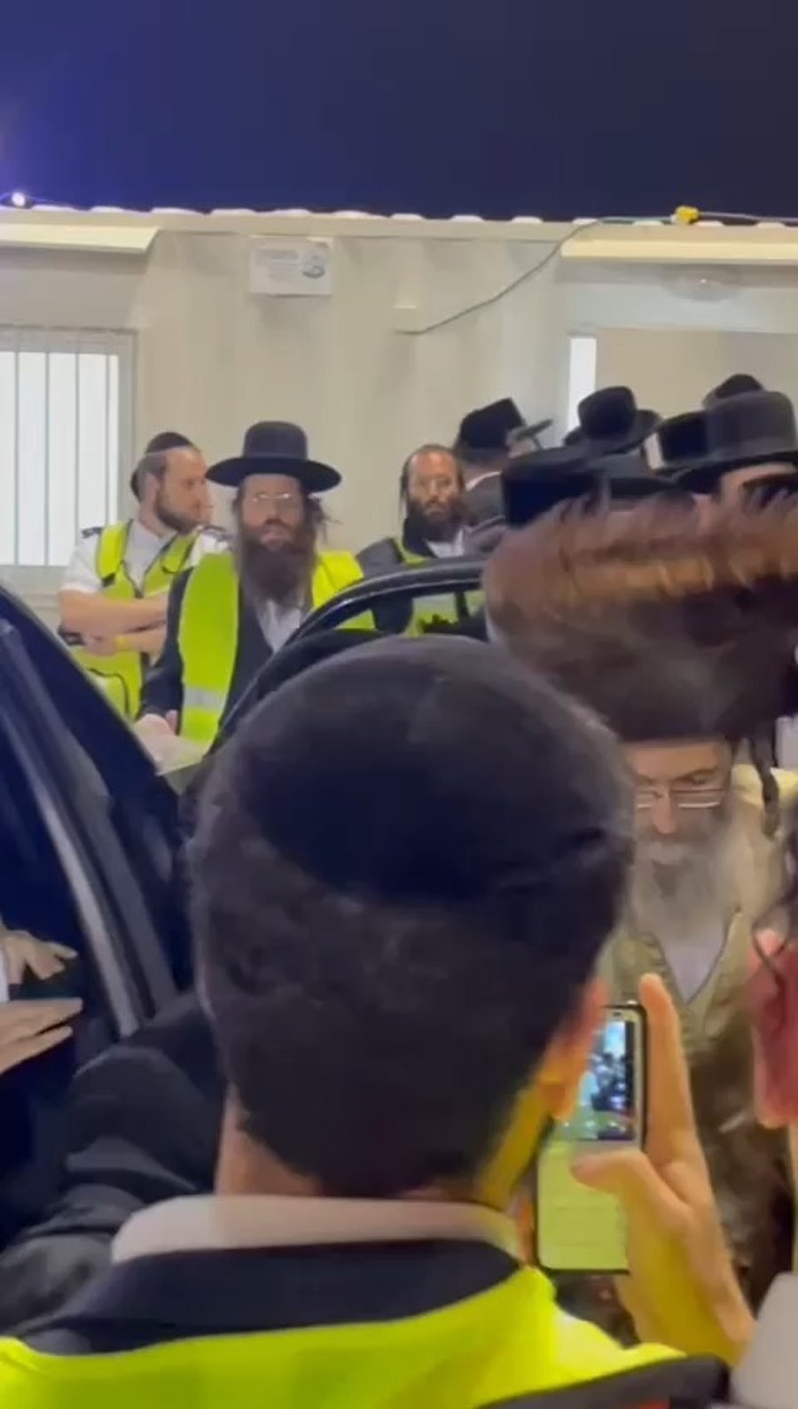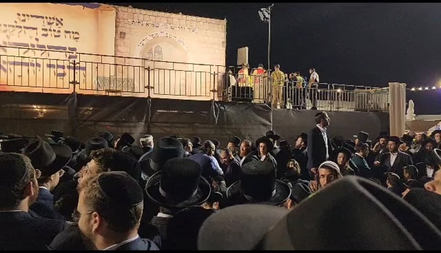 מאחורי הקלעים בהדלקה הסוחפת של המשפיע הגאון רבי אלימלך בידרמן בל"ג בעומר במירון - ראינו את המשפיע מלווה תחת אבטחה כבדה של שוטרים לעבר הבמה.