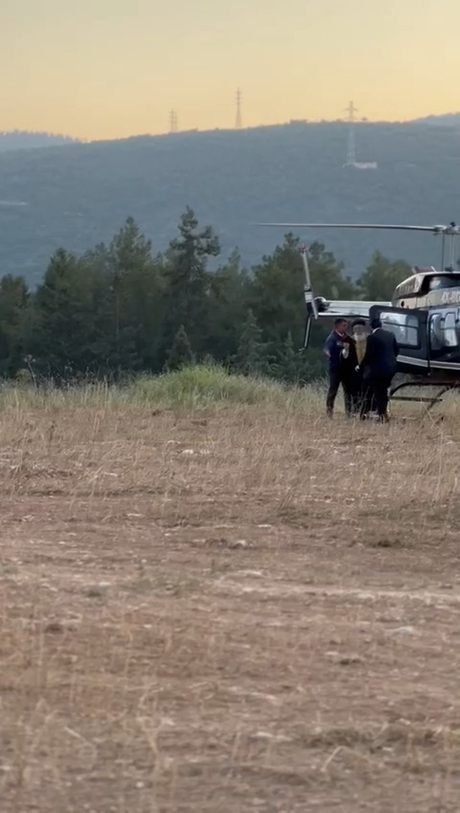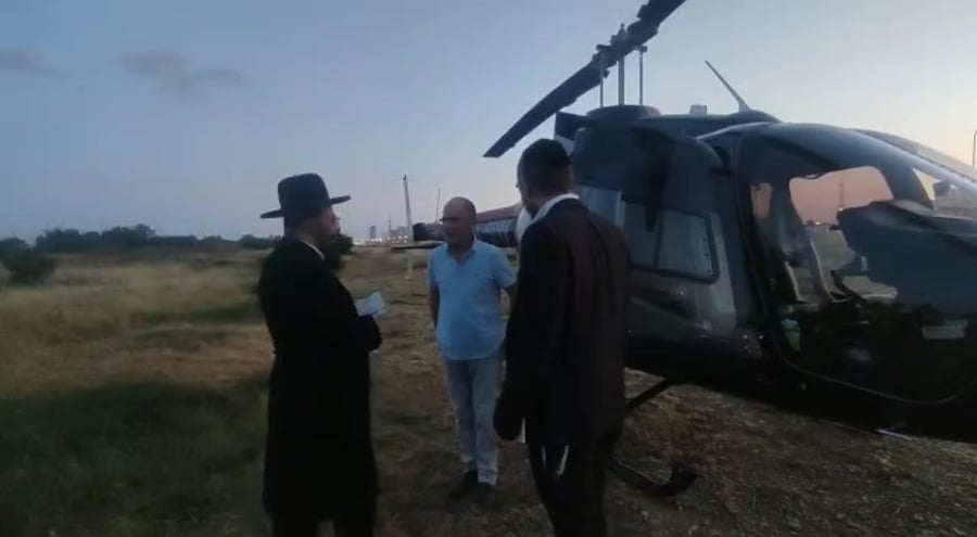 המקובל רבי נתנאל שריקי בטיסה במסוק פרטי לציון הרשב"י במירון, כמעט כאחד האדם.