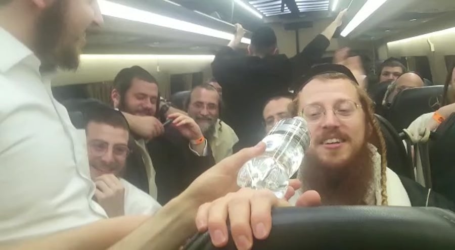 הזמר והיוצר החסידי אברהם מרדכי שוורץ שנסע לל"ג בעומר במירון, תפס טרמפ עם קבוצת בחורי ישיבה - בדרך הוא פצח איתם בשירי רגש, מהצד נראה גם איש השיווק והמיתוג בני קמפינסקי.
