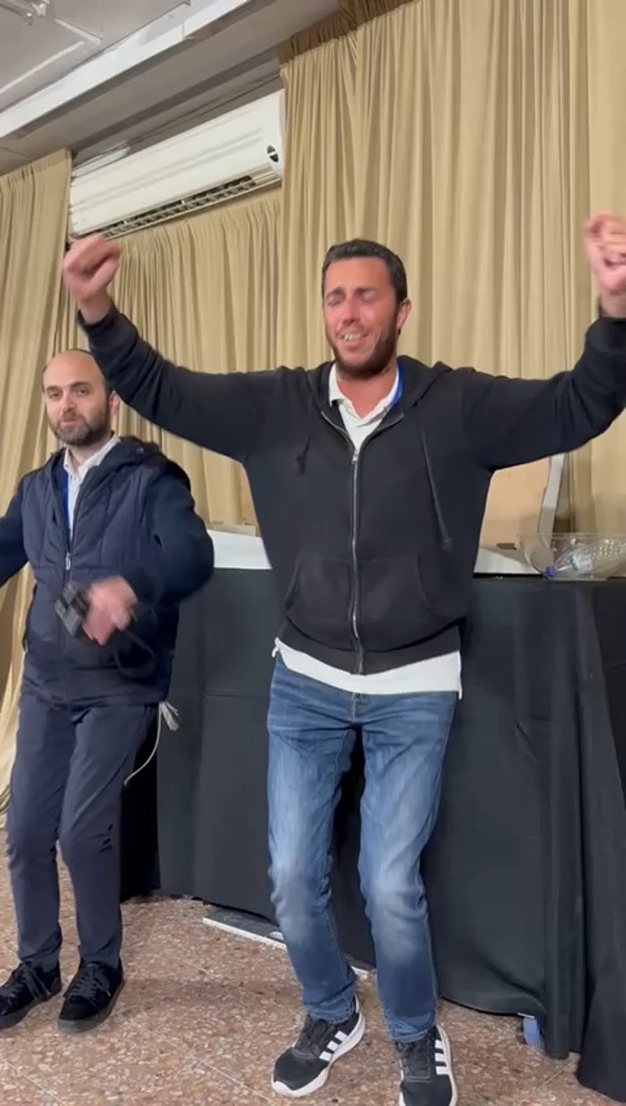 הזמרים ישי ריבו ונתן גושן בתפילת מנחה באירוע פרטי במלון בירושלים.