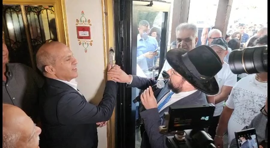 הרב משה ועקנין בקביעת מזוזה באירוע פתיחת המטה והשקת הקמפיין של המתמודד לראשות עיריית אשדוד ברק סרי.