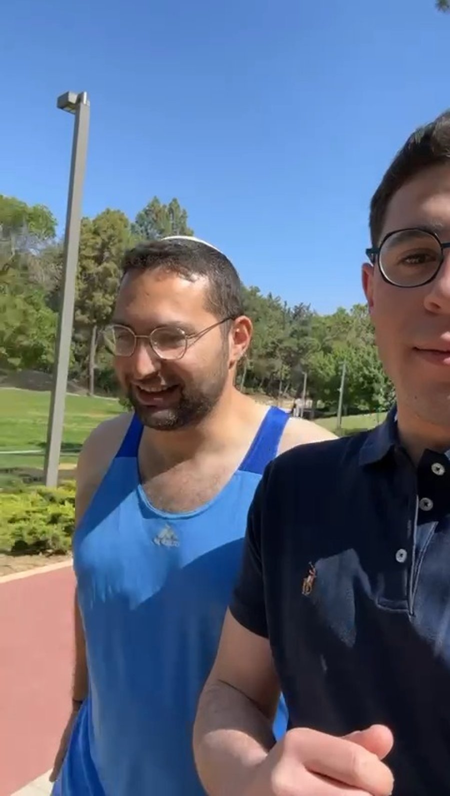 שר הנגב, הגליל והחוסן הלאומי חבר הכנסת יצחק וסרלאוף מ'עוצמה יהודית', בריצת בוקר עם העיתונאי דודי בן חמו, בגן סאקר בירושלים.