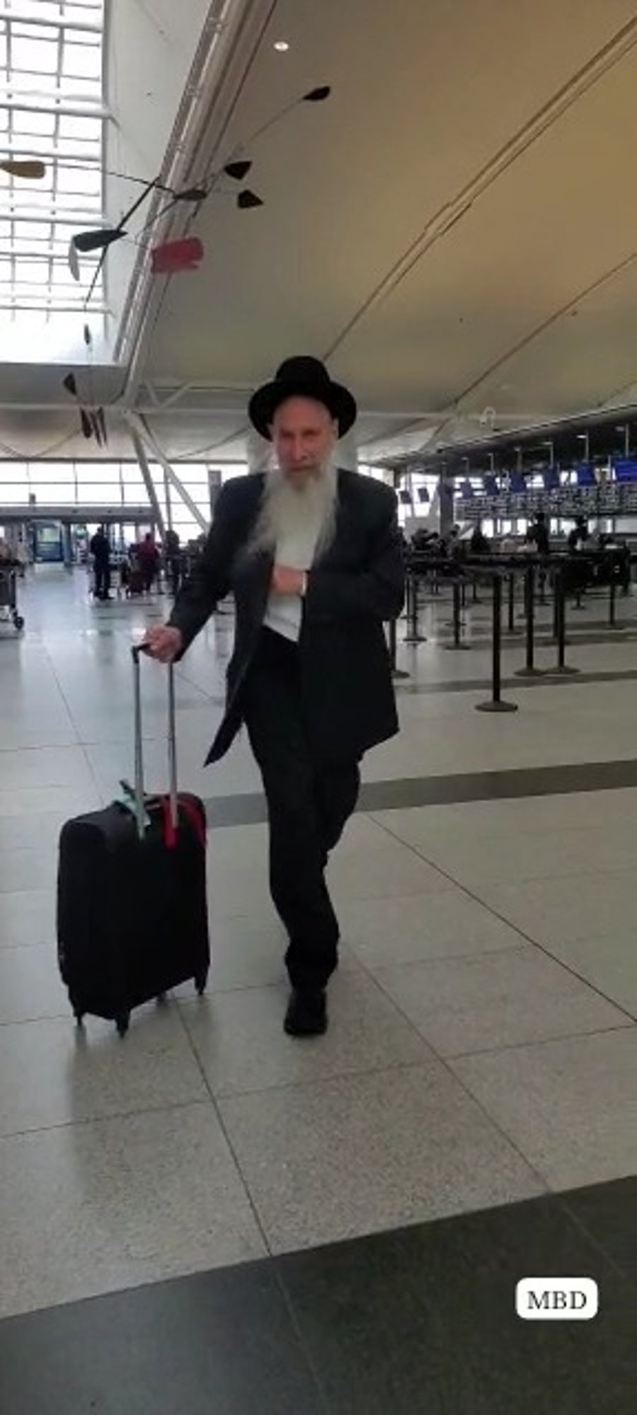 והנה, גדול הזמר מרדכי בן דוד בשדה התעופה בארצות הברית בדרכו להופעה בבנייני האומה.