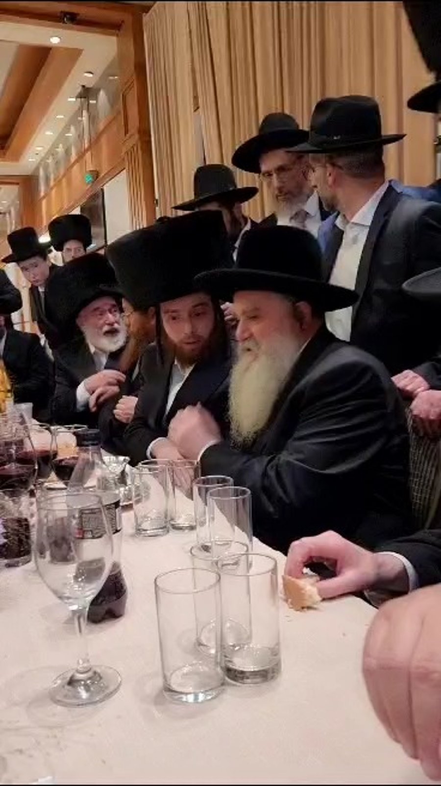 בשולחן הכבוד בשמחה ראינו את האדמו"ר רבי רפאל אבוחצירא מברך את אורחי החתונה, ביניהם השר לשעבר יעקב ליצמן.