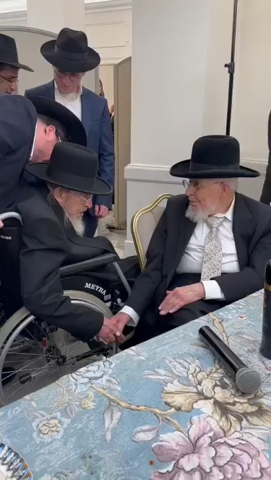 זקן המועצת, ראש הישיבה הגאון רבי ברוך מרדכי אזרחי, נפגש עם אחיו הגאון רבי יצחק אזרחי, מראשי ישיבת מיר, בשבע ברכות לבן יו"ר ועד הישיבות הרב חיים אהרן קאופמן.