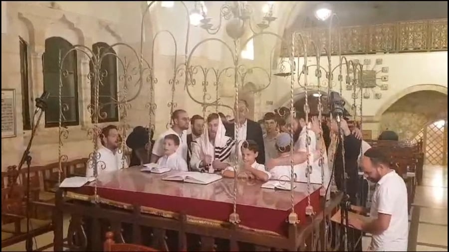 הזמר מוטי שטיינמץ נצפה באמירת קינות מעומק הלב בבית הכנסת בארדיטשוב בבני ברק.