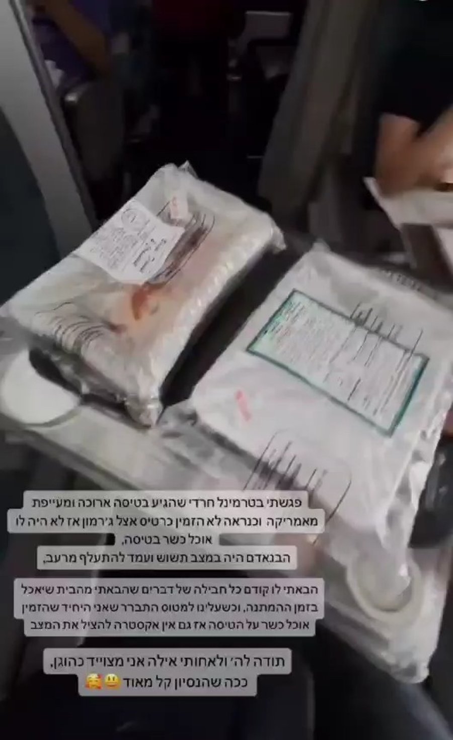 במהלך הטיסה הבחין שמוליק בן הרוש במבוגר חרדי במצב תשוש שלא הזמין אוכל כשר מראש - בן הרוש הביא לו את המנה הכשרה שלו והסתפק באוכל שהביא איתו מהבית. 'זופניק' התרגש.