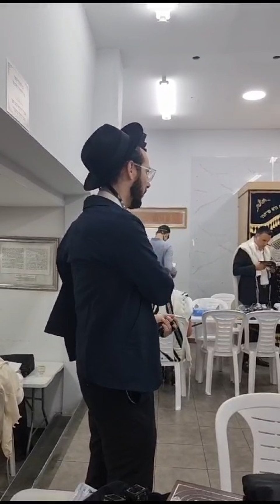 לאחר מכן בתפילת ערבית, ראינו את מגיש הטלוויזיה יעקב אילון ואיש העסקים יעקב הלפרין.