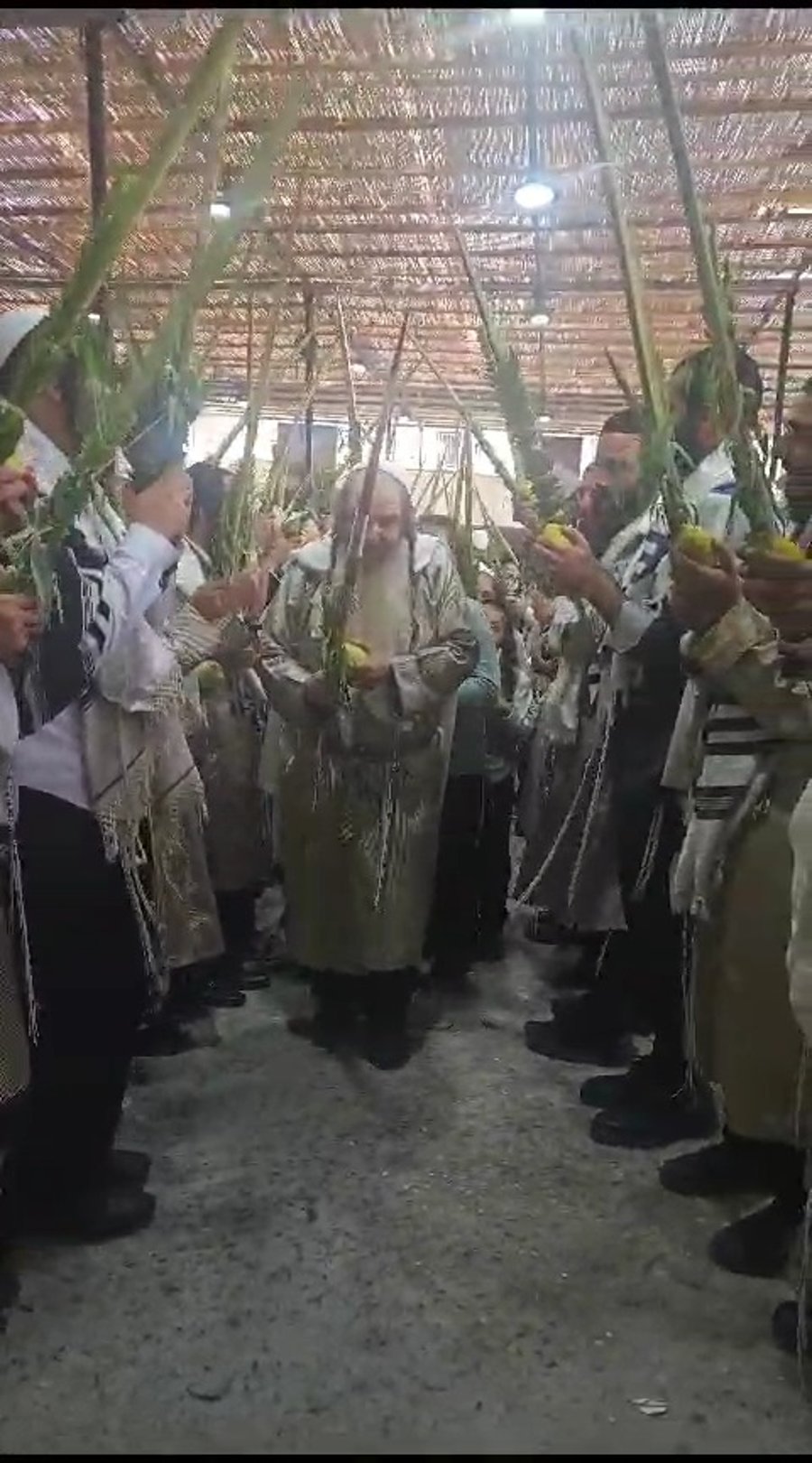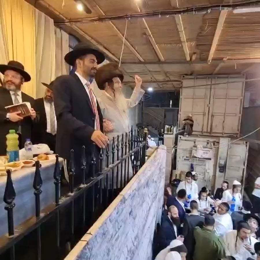 כנסו לאווירה: הגאון הרב שלום ארוש מבכירי רבני ברסלב וראש מוסדות 'חוט של חסד', בשירה וריקודים יחד עם חסידיו - עם ארבעת המינים בתפילת שחרית.