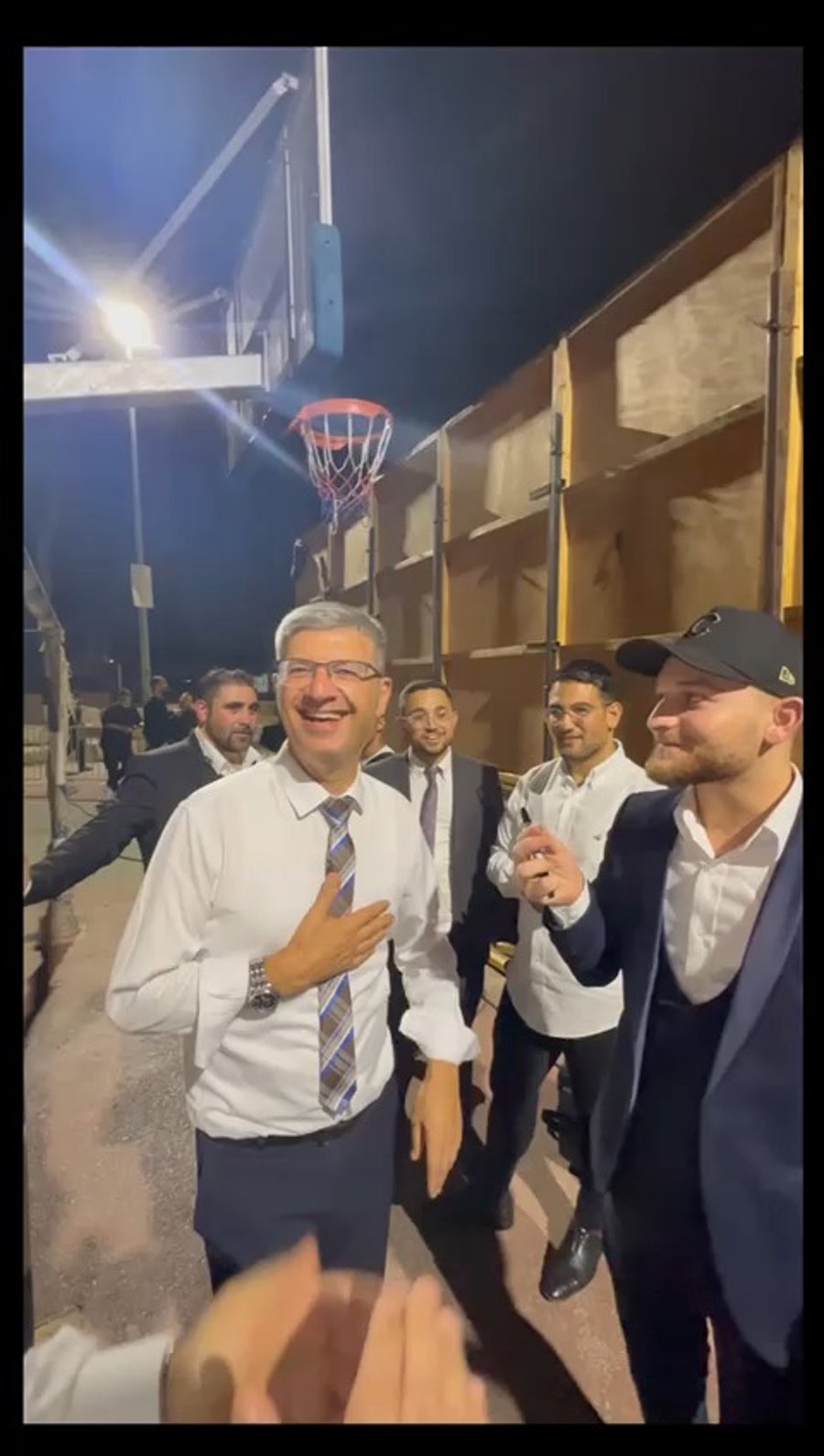 המאבטח של גדולי הדור אדיר מעטו, מתברך מהאדמו"ר ממישקולץ, בשמחת בית השואבה המרכזית בפתח תקווה.