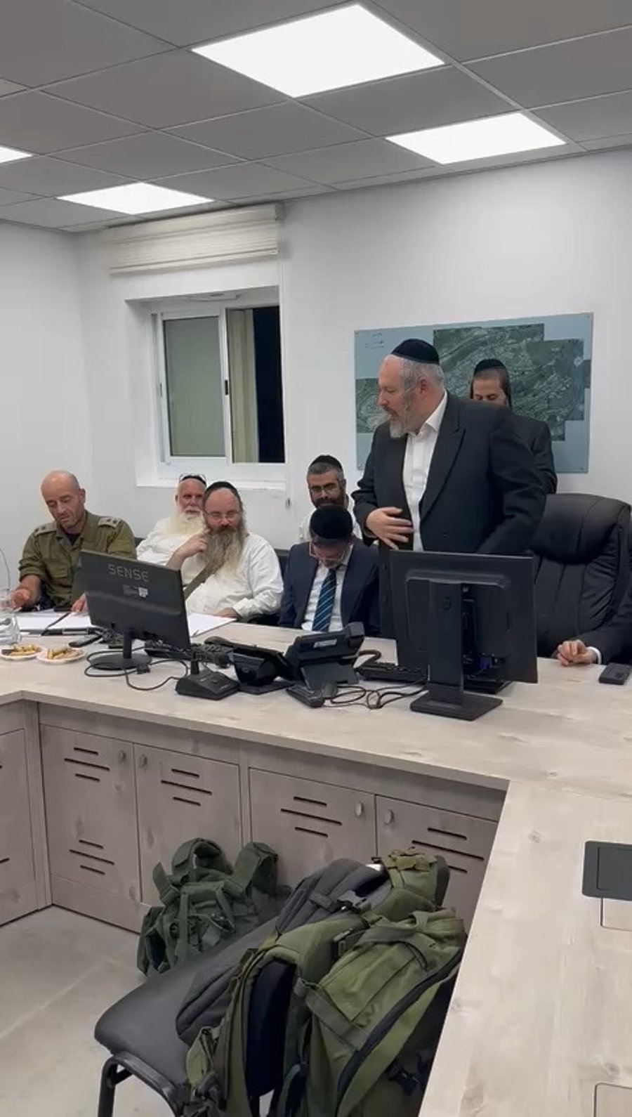 בהמשך ראינו את מאיר רובינשטיין וסגנו דודי זלץ מ'דגל התורה' יחד עם צוות פיקוד העורף, באמירת תהילים לאחר ישיבת החירום בעיר.