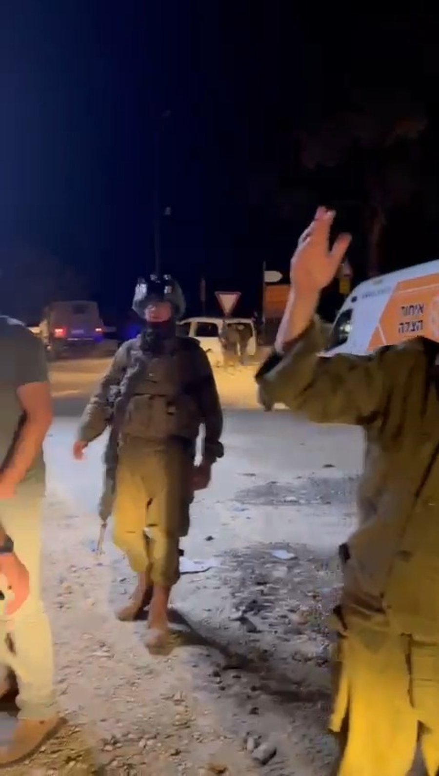 דובר עיריית ביתר עילית שלומי גיל, שמשרת במילואים, נצפה עם ראש העיר מאיר רובינשטיין ויד ימינו יהודה דייטש בזירה בה נפל הטיל בעיר.