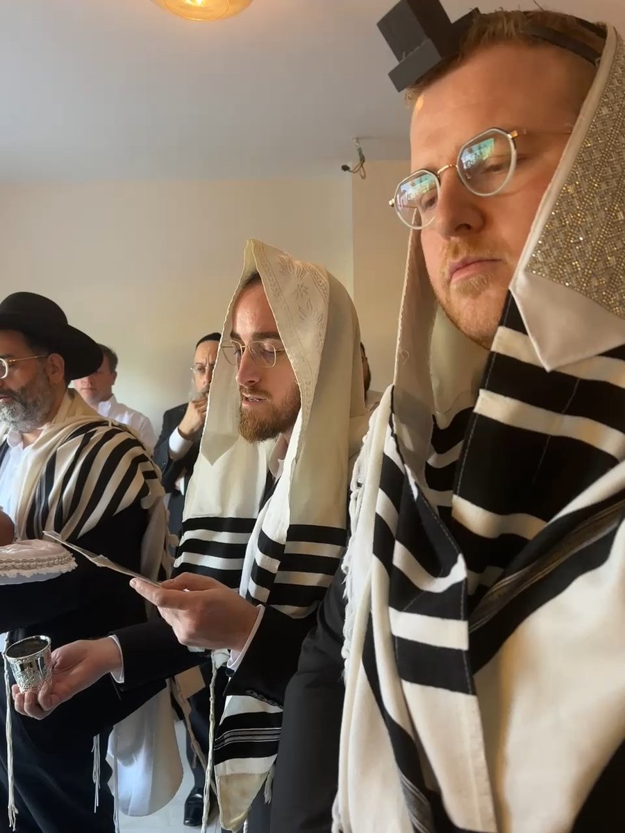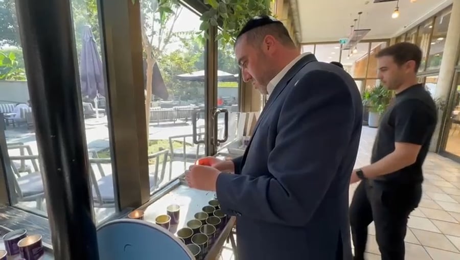השף חיים בורנשטיין שגויס למילואים, בתפילת שחרית עם טלית ותפילין.