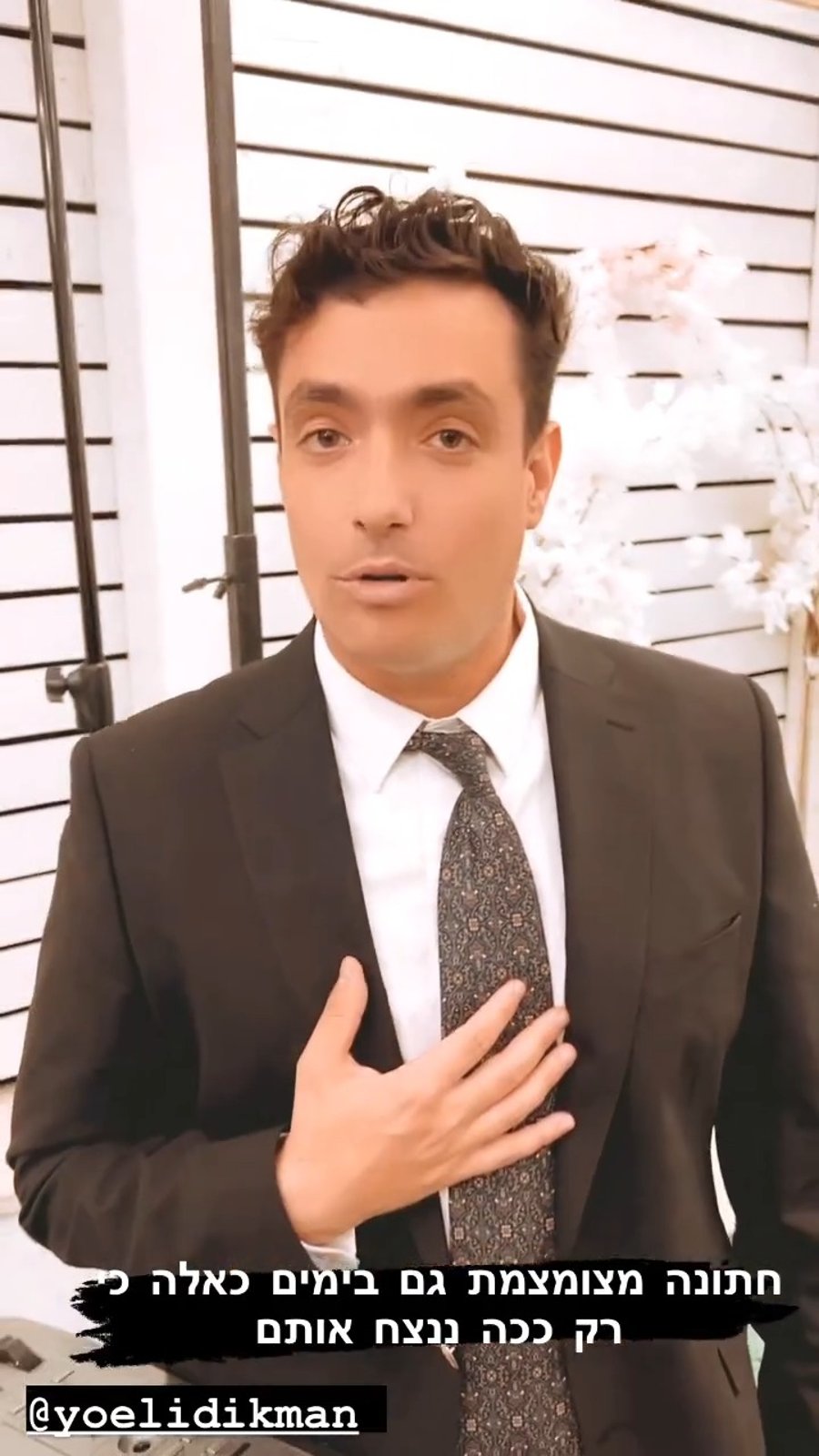 את רבה של שכונת 'צהלה' בתל אביב הרב חיים הורביץ ראינו מסדר חופה וקידושין לבני זוג שנישאו באירוע מצומצם בשל המלחמה. על החלק המוזיקלי ריגש הזמר שולי רנד.