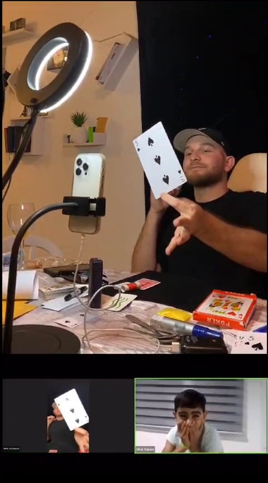 אמן החושים החרדי מני הולנדר במופע זום לאלפי ילדי הדרום שנמצאים בממ"ד ביוזמת 'אחוות תורה' • כך זה נראה מאחורי הקלעים
