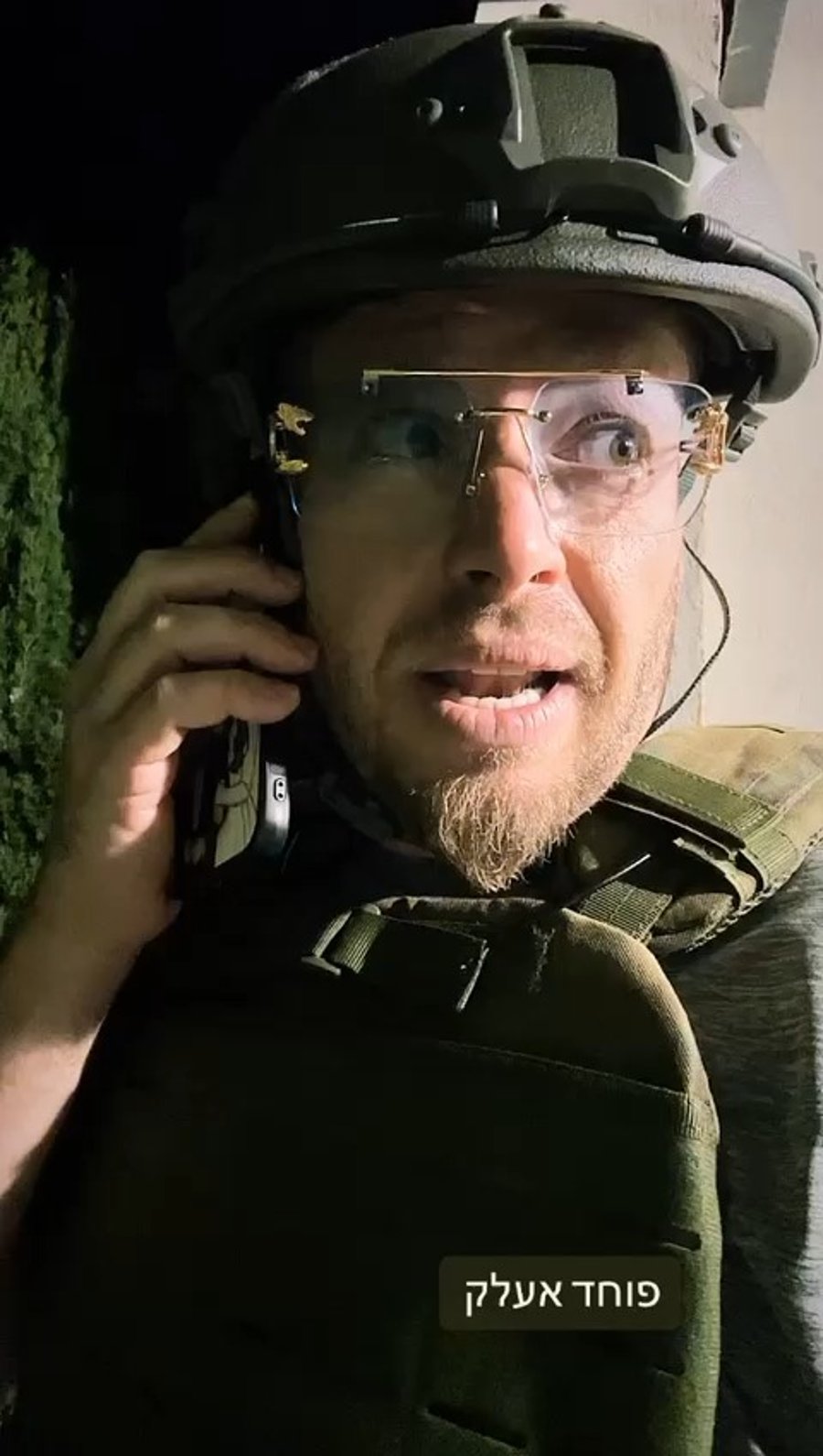 הצלם וכוכב הרשת שלומי כהן נצפה מתמגן עם קסדה ואפוד מגן בצל האזעקות וירי הטילים.