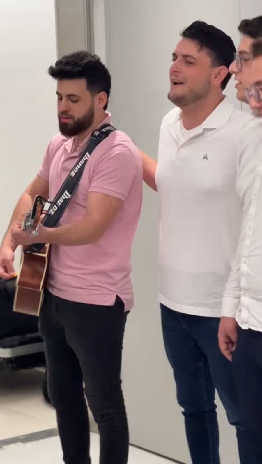 את פרופסור יונתן הלוי נשיא בית החולים 'שערי צדק' והזמר אוהד מושקוביץ, ראינו ממתינים בשדה התעופה בארצות הברית לטיסה לארץ הקודש.