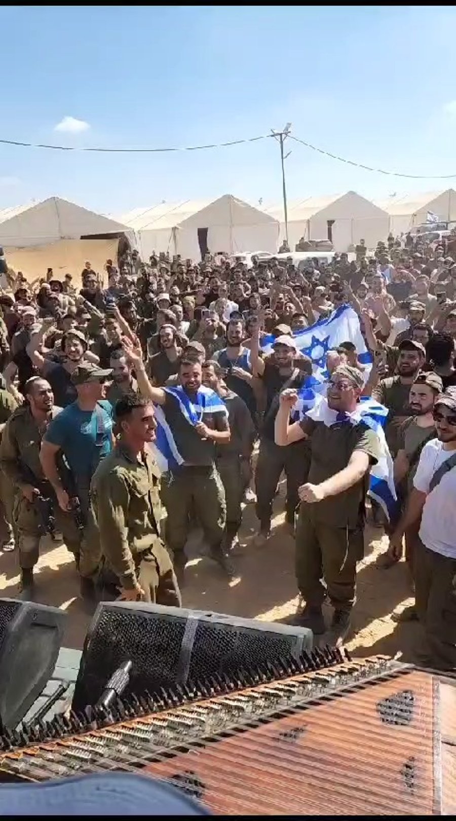 בהמשך השבוע ראינו את הזמר עומר אדם משמח בשירי רגש את חיילי הפלוגה החרדית במילואים בדרום.