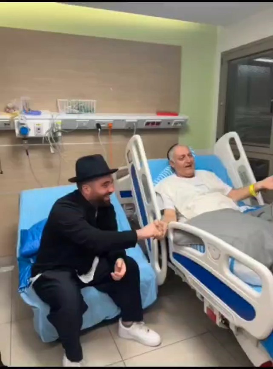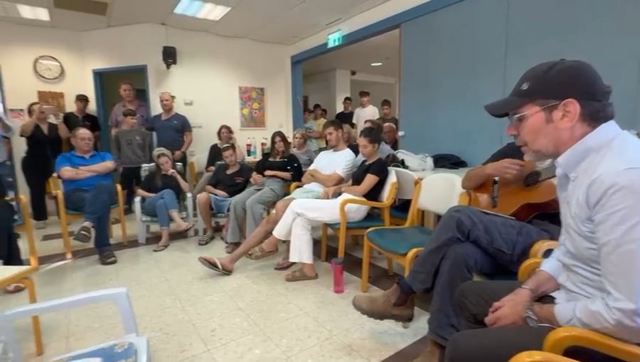 הזמר עומר אדם נצפה משמח פצועים מהמלחמה בדרום בשירי רגש בבית החולים 'תל השומר'.