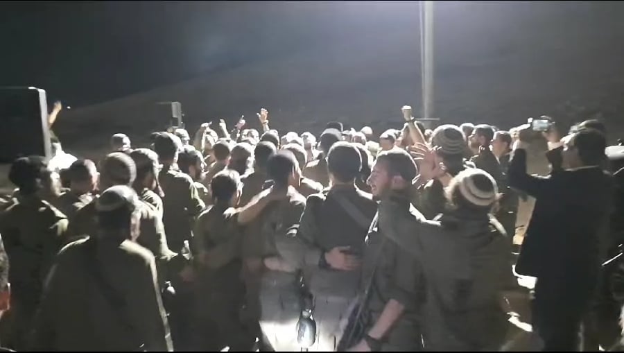 "עם הנצח לא מפחד מדרך ארוכה" • הגאון רבי יצחק דוד גרוסמן, רבה של מגדל העמק - מחזק בשירה וריקודים את הלוחמים החרדים של גדוד 'נצח יהודה', על המוזיקה הופקדו: הזמר יעקב הראל בוגר הגדוד והקלידן מאיר פריד.