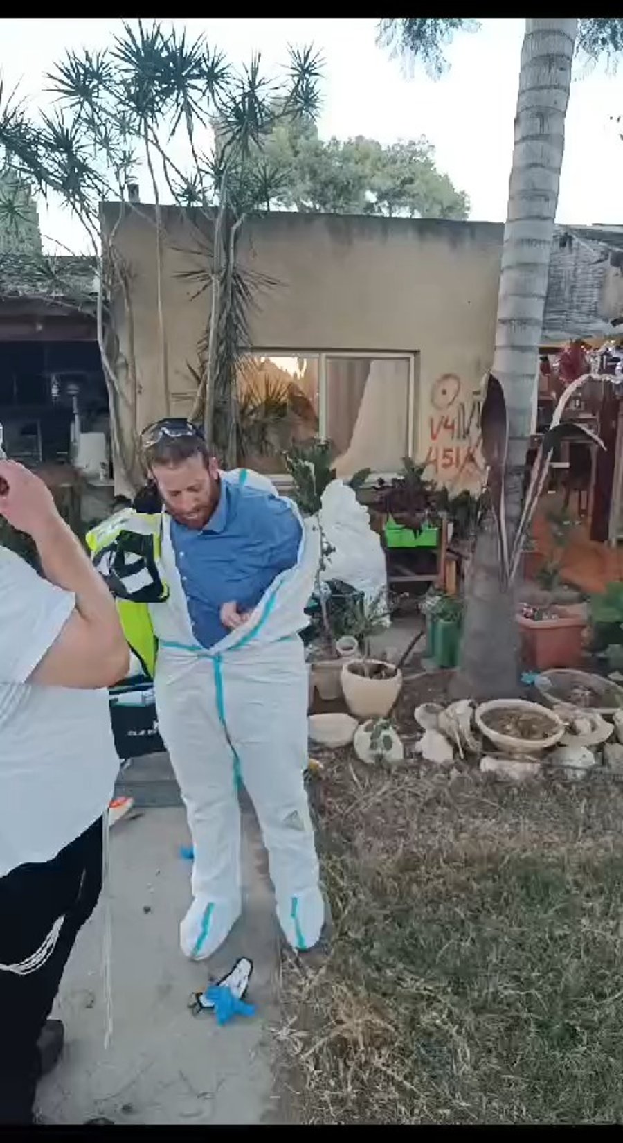 סוכן השחקנים החרדי יוסי הופמן במלאכת הקודש עם מתנדבי זק"א ביישובי עוטף עזה.