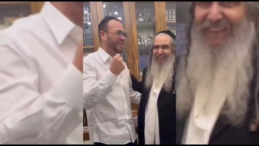 כוכב הרשת, הזמר והיוצר שוקי סלומון ומנהלו האישי איש התקשורת איציק אוחנה מ'כיכר השבת', בברכה והתייעצות במעונו של הגאון הרב שלום ארוש מבכירי רבני ברסלב וראש מוסדות 'חוט של חסד'.