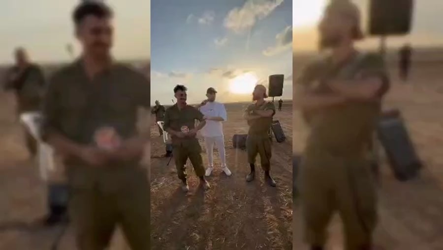 את הזמר אברהם פריד שהגיע לחזק בשירה את אנשי הרבנות הצבאית, ראינו מברך בחום את החזן שלמה גליק שנמצא בשירות מילואים.