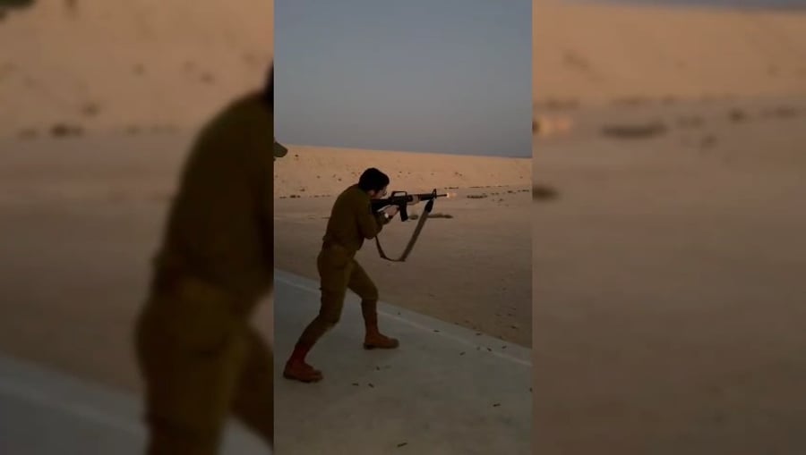 רגע לפני השחרור מצה״ל, איש התקשורת ישכר זלמנוביץ ממנהלת החרדים הצבאית בהכשרת ירי בבסיס בדרום.