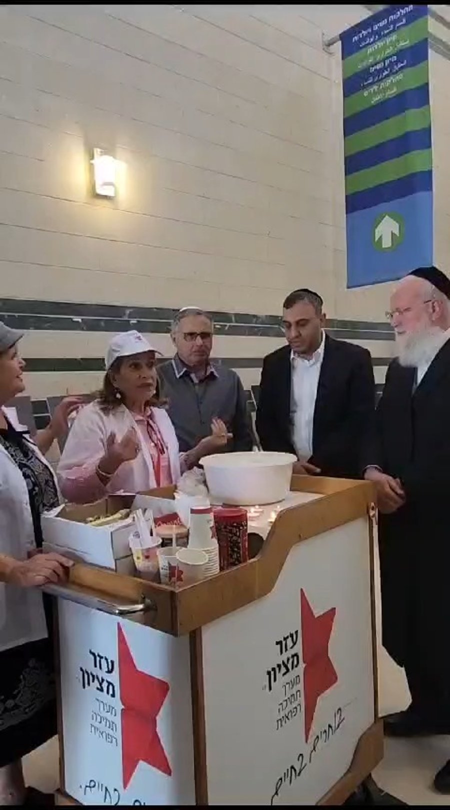 הרבנית מרים דרעי מבאר שבע בהפרשת חלה לרפואת פצועי המלחמה בבית החולים 'סורוקה' יחד עם יו"ר ועדת הבריאות ח"כ יוני משריקי מש"ס, ח"כ משה רוט מ'אגודת ישראל' ומנכ"ל 'כללית' אלי כהן.