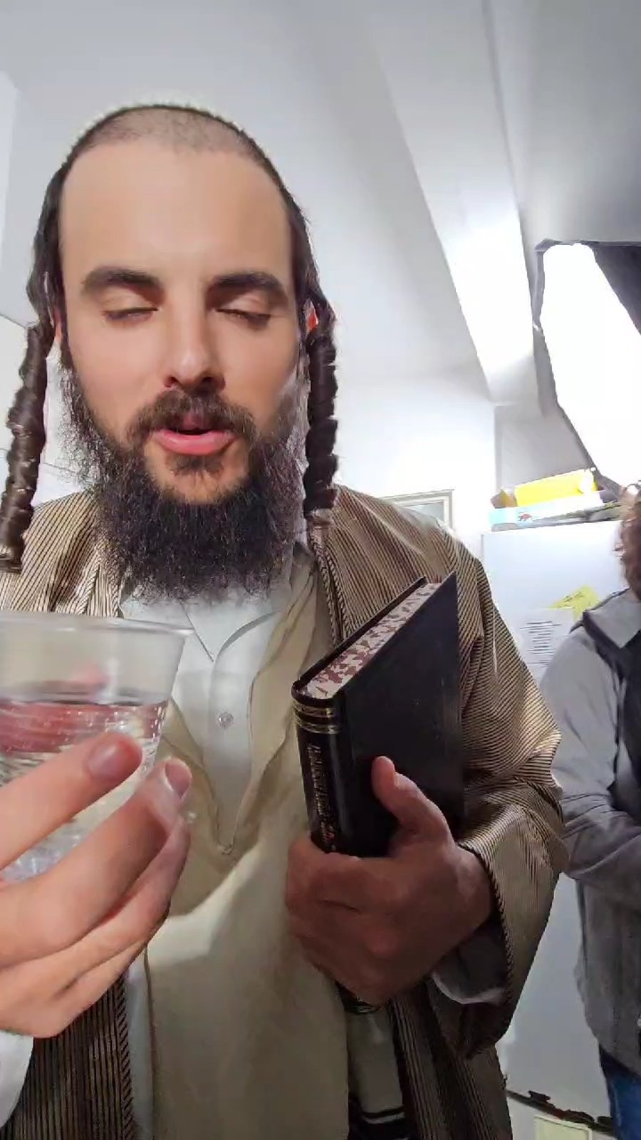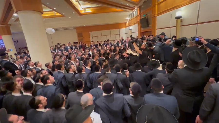 ראש ישיבת הקיבוץ רמות חבר מועצת העיר ירושלים הרב אלחנן גרוסבוים נצפה בעוד שיחת מוסר לתלמידו הקרוב מפיק האירועים אלכסנדר הוכברגר תוך כדי אירוע יוקרתי.